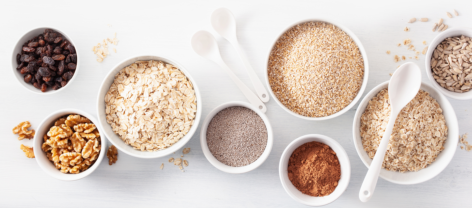 | Main Sources | Oat bran, nuts, seeds, beans, and some fruits and vegetables. | Whole grains, vegetables, and fruit skins. |